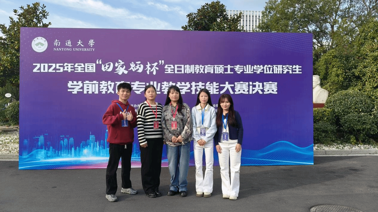 10月31日至11月2日,2025年全国“田家炳杯”全日制教育硕士专业学位研究生学前教育专业教学技能大赛决赛在南通大学举办。我校教育科学学院学子获全国二等奖1项、三等奖1项、优秀教学设计奖1项,指导教师范瑞芝获“优秀指导教师奖”。