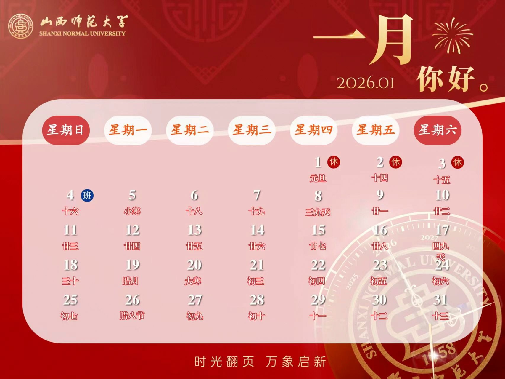 2026年1月 月历