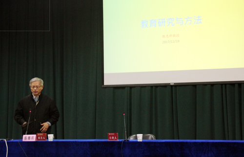 2017年12月19日下午,台湾清华大学校长陈惠邦应邀来我校作了题为《教育研究与方法》的学术报告。教育科学研究院与教师教育学院的全体研一学生聆听了报告,教科院副院长杨晓主持报告会。