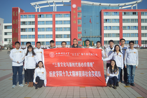 “三晋文化与新时代核心价值观”宣讲实践队将在随后的实践中积极宣传十九大精神,弘扬三晋文化,真正让党的十九大精神落地生根,做新时代核心价值观的宣传者和践行者。(历史学院 供稿)