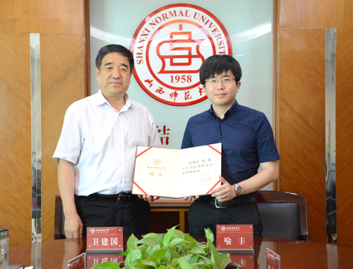 7月9日下午,我校在科学会堂1007会议室举行喻丰特聘教授聘任仪式。校长卫建国,副校长郝勇东出席聘任仪式。校办、人事处、教育科学学院相关负责人参加了仪式。