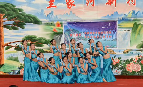 支教巡演艺术团还赴东城乡柏东村与当地村民合作演出文艺晚会。