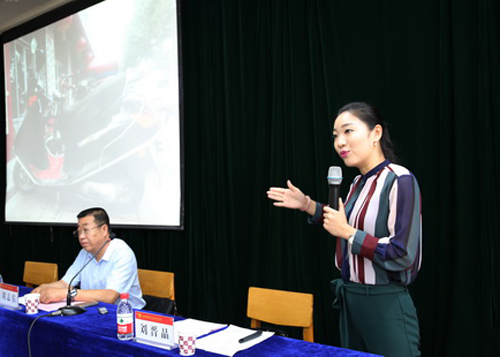 临汾市尧都区五一劳动奖章获得者刘晋晶作报告