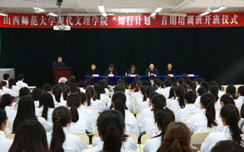 2016年11月11日上午8:30,山西师范大学现代文理学院“知行计划”首期培训班开班仪式在阶梯教室B-102隆重举行。学院全体院领导、各职能部门负责同志、各系党支部书记及120名“知行计划”参训学员参加了开班仪式。院长毕润成主持了仪式。