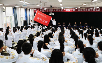 院党委书记刘世民作了动员讲话。他说,学院酝酿已久的“知行计划”得以如期实施,具有重要的战略意义,对我院培养“德智体美责”全面发展的创新人才,将起着示范引领作用。对于即将开启首期培训之路的学员们,刘书记提出了五点意见:一是珍惜机会。“知行计划”是学院培养创新拔尖人才的需要,也是为国家培养优秀社会主义事业建设者的需要,学院为之倾注了大量的心血,学员们要把握好助推自己成功成才的良好机遇。二是遵守纪律。铁的纪律是计划顺利实施的保证。学员们要严格遵守各项要求,坚信“成人不自在,自在不成人”,以不达目的不罢休的人生追求,克服困难,完成任务。三是学会学习。要养成善于批判质疑和敢于追求真理的精神。在追求真理的过程中,学员们要善于利用时间,沉得住气,耐得住寂寞,不被浮躁的喧嚣所影响。四是爱惜荣誉。不站在舆论危墙下,要知行合一,引领风尚,在举手投足之间,凸显“高雅、典雅、文雅”的气质,体现出优秀传统文化的情怀。五是引领学风。学员们要不辱使命,扛起学风建设的大旗,将在“知行计划”实践锻炼中学到的优秀品质和优良作风带进课堂、融入生活、影响他人,引领校风新时尚。