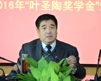 范哲锋处长首先介绍了“叶圣陶奖学金”的成立、发展及其宗旨,并对我校“叶圣陶奖学金”的评选条件做了解释,宣读了2016年度“叶圣陶奖学金”的获奖人员名单。