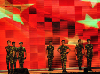 伴随着劲爆的舞曲《up town funk》,晚会正式开始,歌曲《她说》轻缓舒畅,身后蝴蝶飞舞,宛如仙女置身仙境。精彩的手影舞若隐若现,蓝色的荧光手套拼出一颗颗跳动的心,讲述着过去和未来的事。《戏说三打白骨精》以其幽默搞笑的剧情赢得台下阵阵掌声。折扇舞动、鲜花落台,舞蹈《风酥雨忆》将一幅江南水墨图展现在观众眼前,令人神往;风趣、喜感的脱口秀节目把整场晚会推向高潮。之后,独舞《我的歌声里》,全场观众陶醉于舞者的深情舞蹈中。播音班的诗朗诵《少年中国说》令人振奋,国之威武在浑厚的声腔中体现得淋漓精致;体育学院同学们带来的《武动乾坤》强拳劲腿、刀枪棍棒,再次嗨翻全场;一曲《小情歌》闪亮登场,观众席中闪光灯随着音乐摆动,场面浪漫而温馨;群舞《跨越》,一个个身着迷彩的好男儿空翻劈叉,展现了刚毅不屈的军人风采。