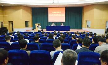 4月25日下午,我校2016年中层干部培训班开班,校党委书记符惠明作了主题报告。校党委副书记、校长卫建国主持了报告会。校党委副书记薛耀文、纪委书记刘奎生、副校长郝勇东及全校中层以上干部参加了培训。