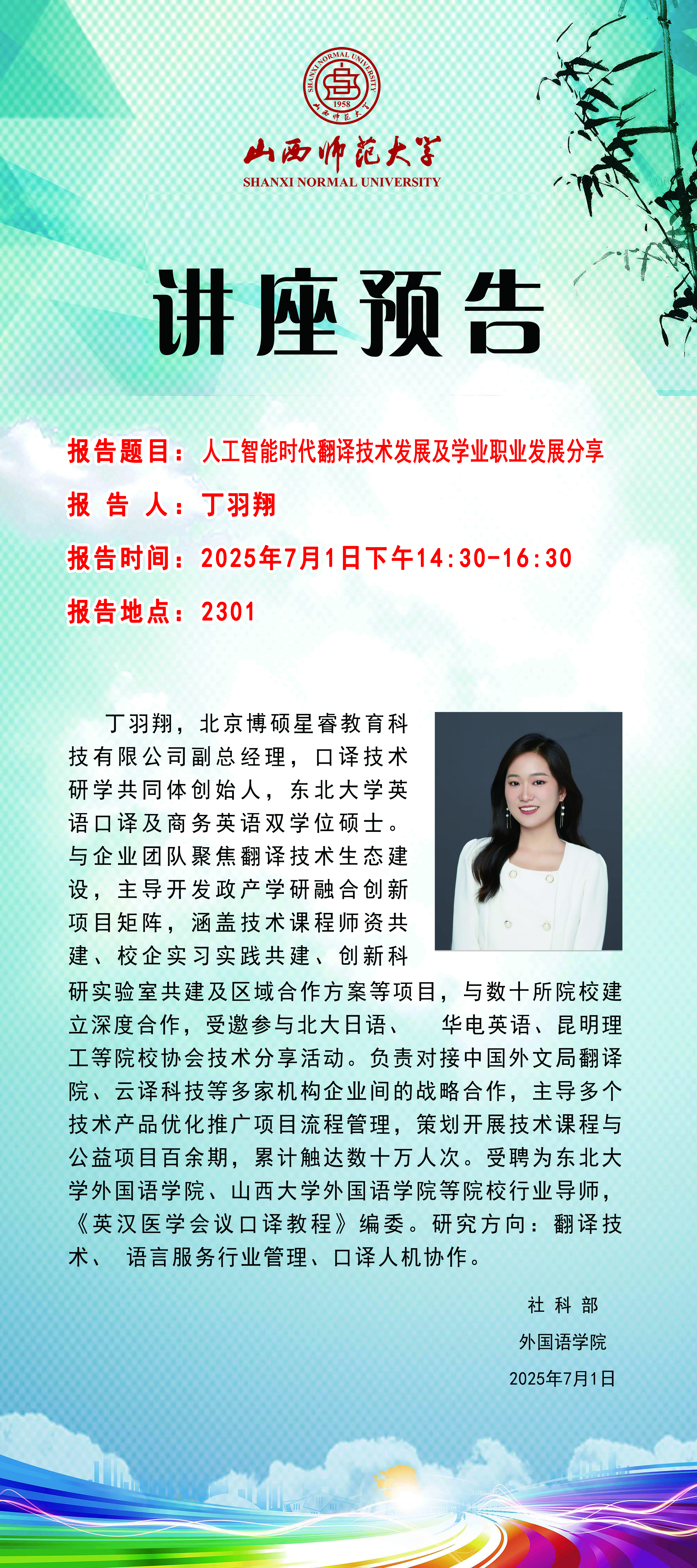 【预告】北京博硕星睿教育科技有限公司丁宇翔副总经理应外国语学院邀请作学术报告