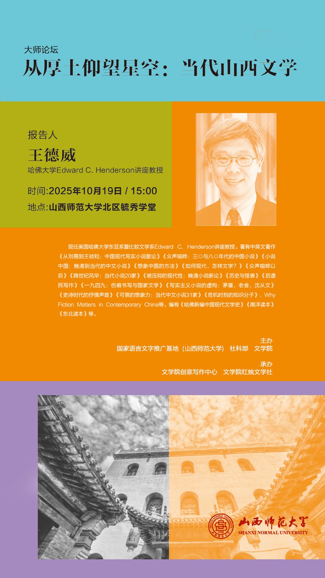 【大师论坛】哈佛大学王德威教授应文学院邀请做学术讲座