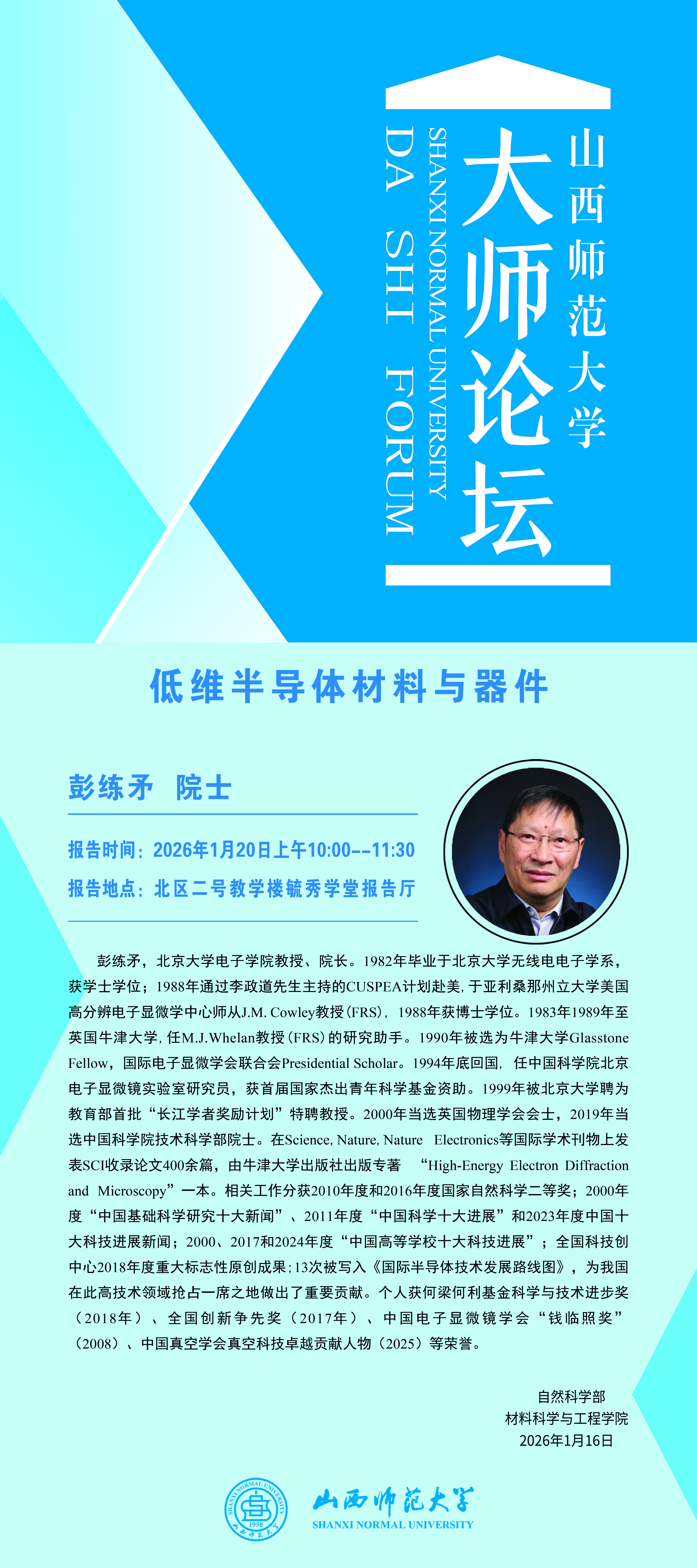 【大师论坛】北京大学彭练矛院士应我校邀请作学术报告