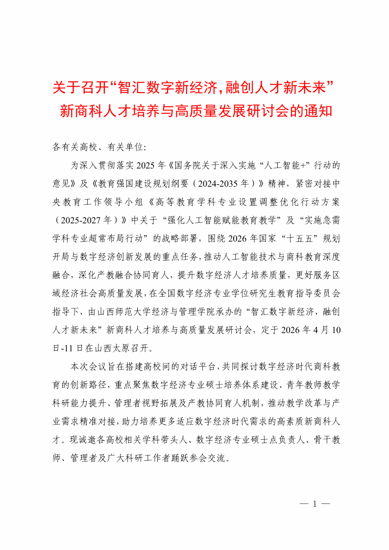 关于召开“智汇数字新经济,融创人才新未来”新商科人才培养与高质量发展研讨会的通知