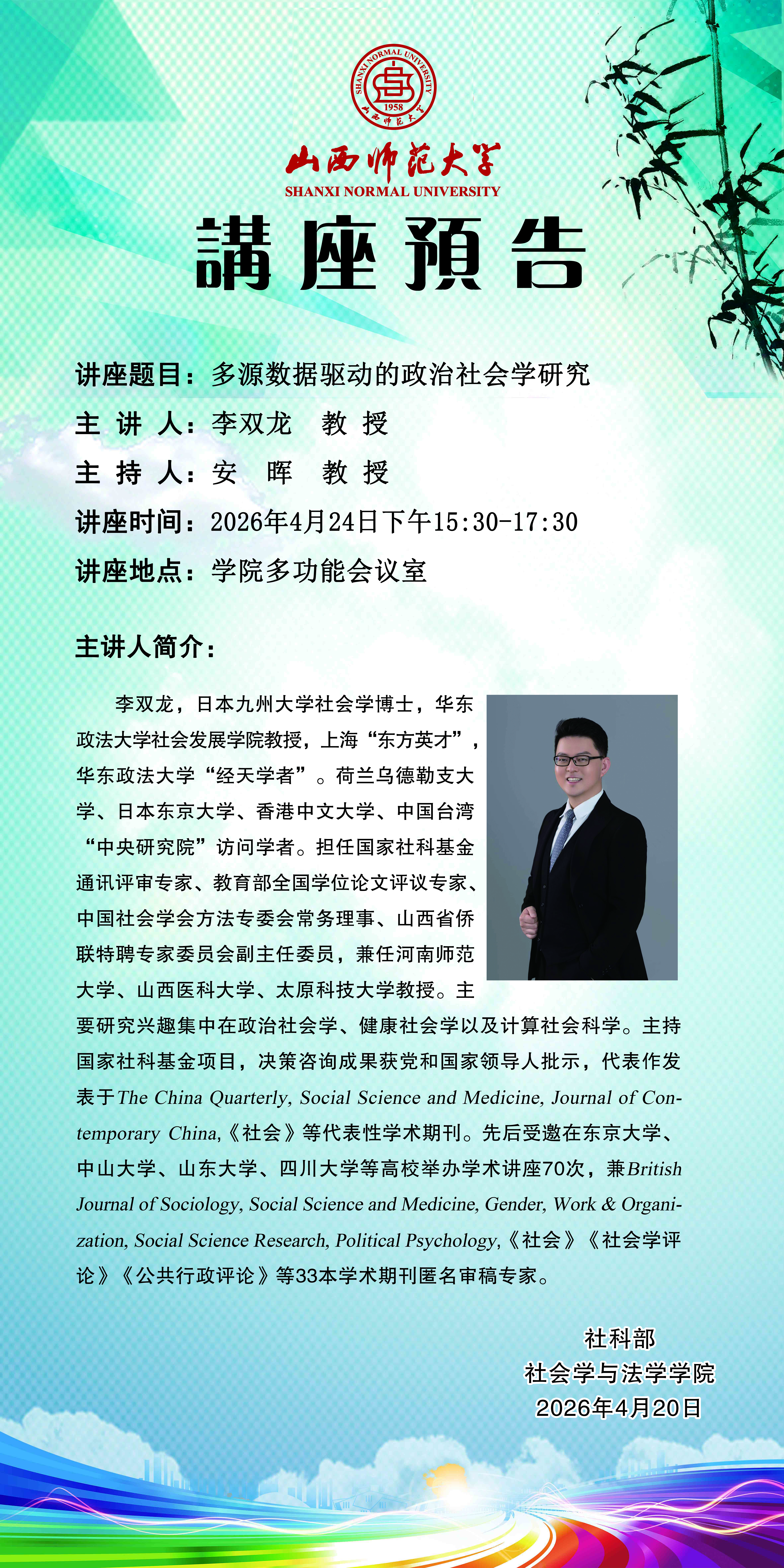 【预告】华东政法大学李双龙教授应社会学与法学学院邀请作学术报告