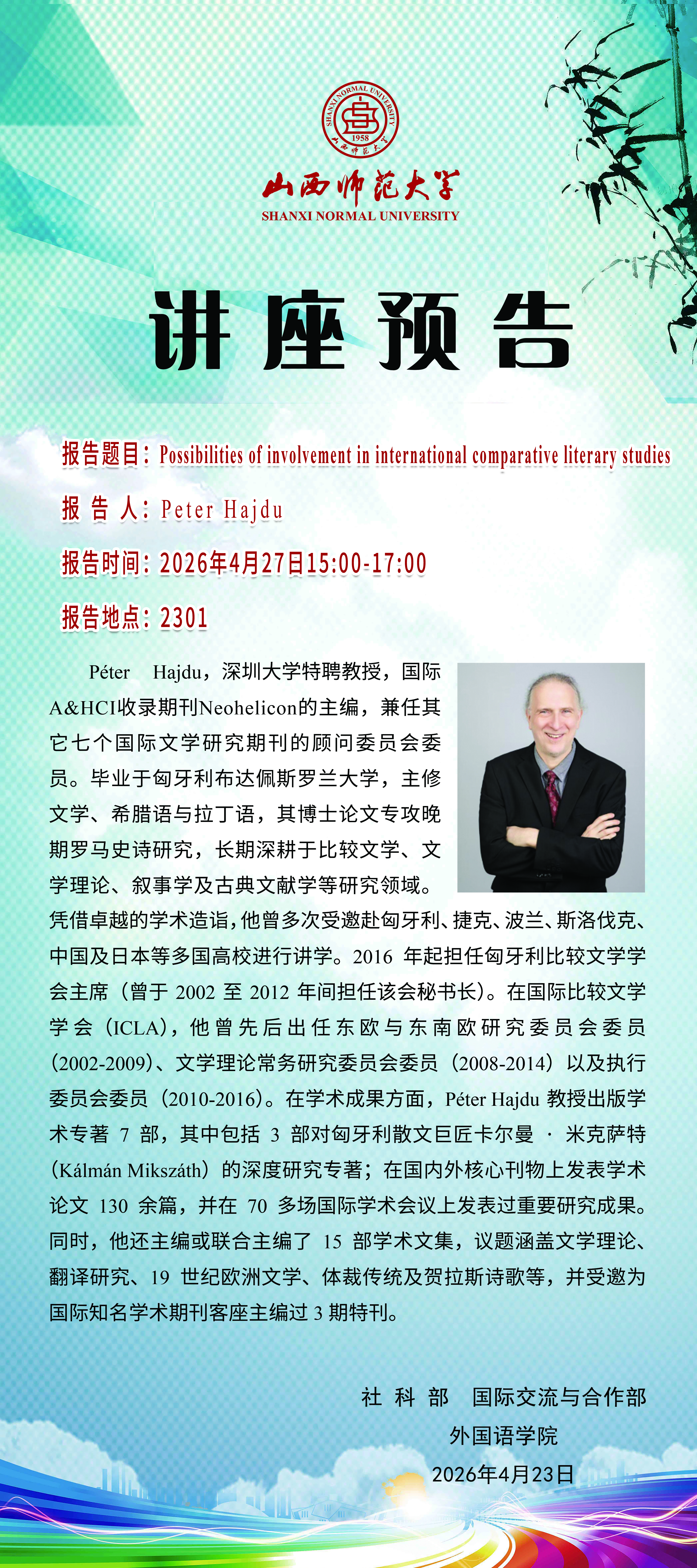 【预告】深圳大学Peter Hajdu教授应外国语学院邀请作学术报告