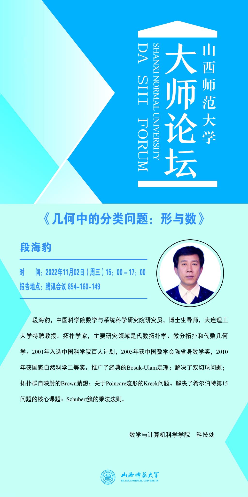 【预告】大师论坛--中国科学院段海豹研究员应我校邀请作学术报告