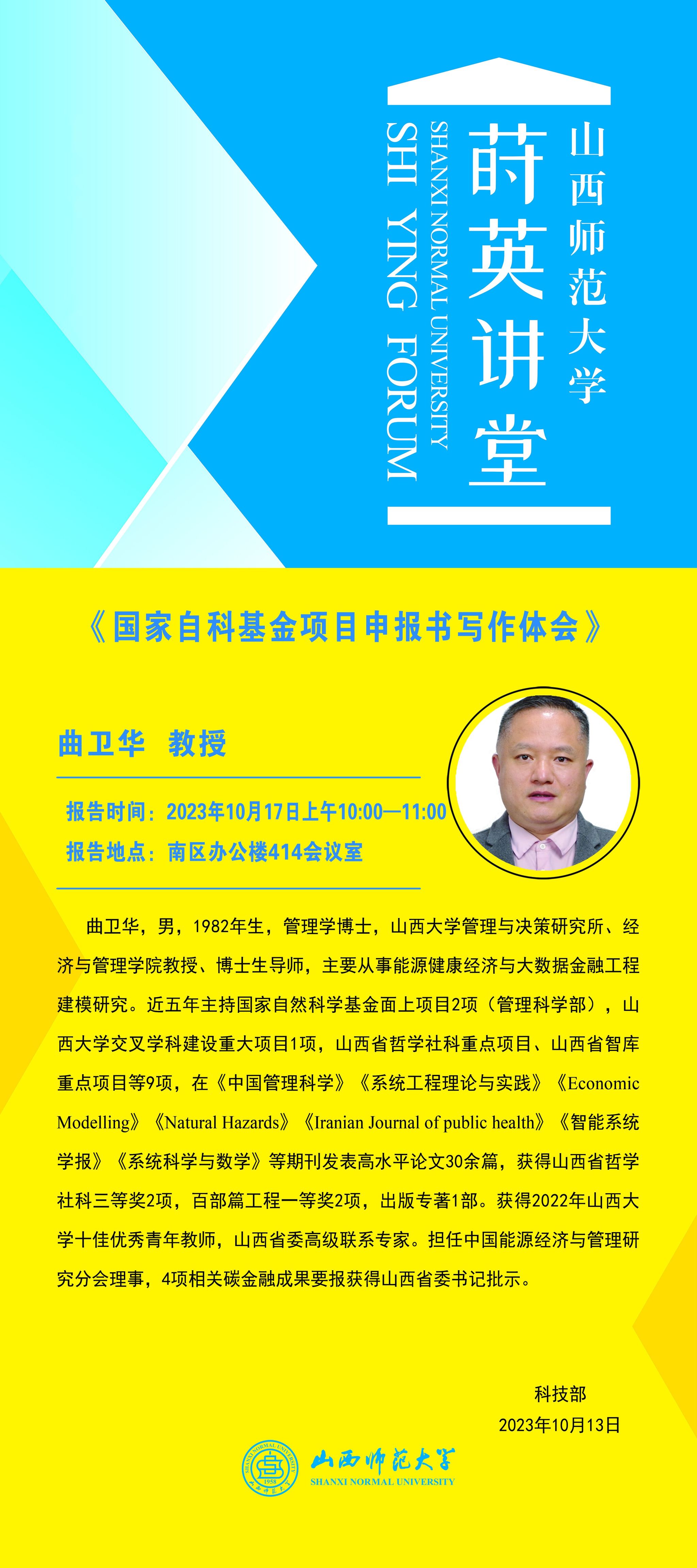 【预告】山西大学曲卫华教授应我校邀请作学术报告