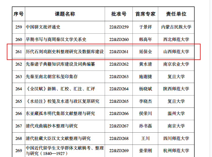12月8日,全国哲学社会科学工作办公室公布2022年度国家社科基金重大项目立项名单,我校艺术学部常务副部长、戏剧与影视学院院长延保全教授作为首席专家申报的“历代石刻戏剧史料整理研究及数据库建设”获准立项。